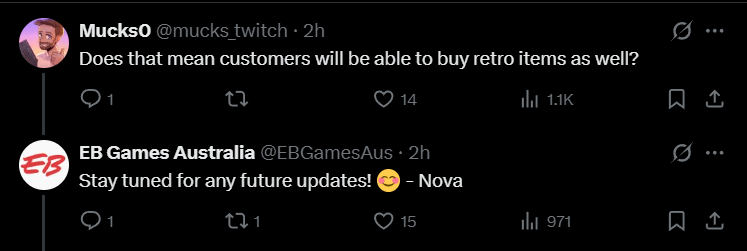 Trades must be working and resalable which may be an indication that EB Games plans to sell Retro gear in the near future. There is also this Twitter reply: